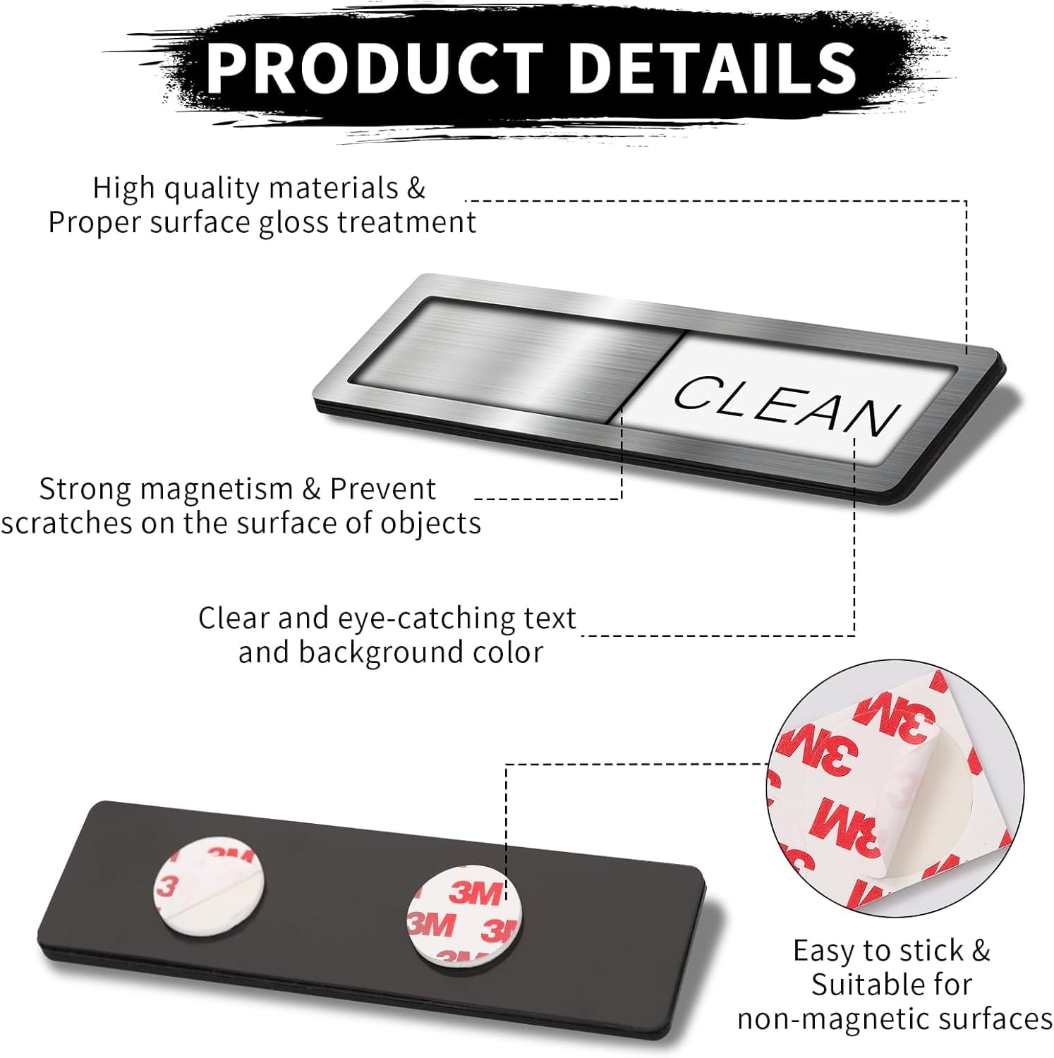 - ã€ÂDurable and High Quality】These clean dirty dishwasher magnets are made with professional craftsmanship and high-quality materials, which are corrosion-resistant, rust proof, and durable. The front is designed with a simple and elegant silver finish, smooth and glossy, which can be perfectly matched with other kitchen utensils. The back is lightweight and fully magnetized, with a smooth surface that can be attracted to any magnetic surface without scratching the surface.